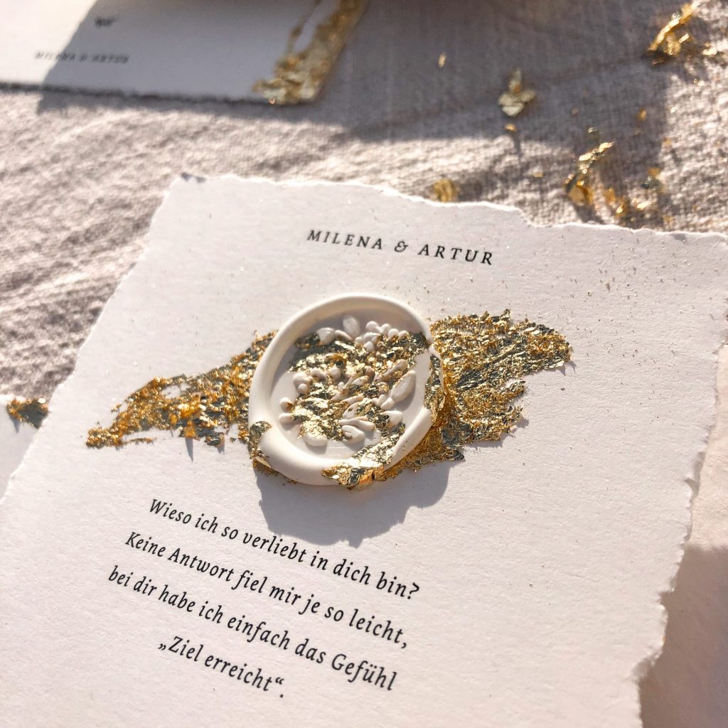 Individuelle Wachssiegel, Aquarellmalereien oder Verzierungen mit Blattgold, die passenden Veredelungen fertige ich in liebevoller Handarbeit.